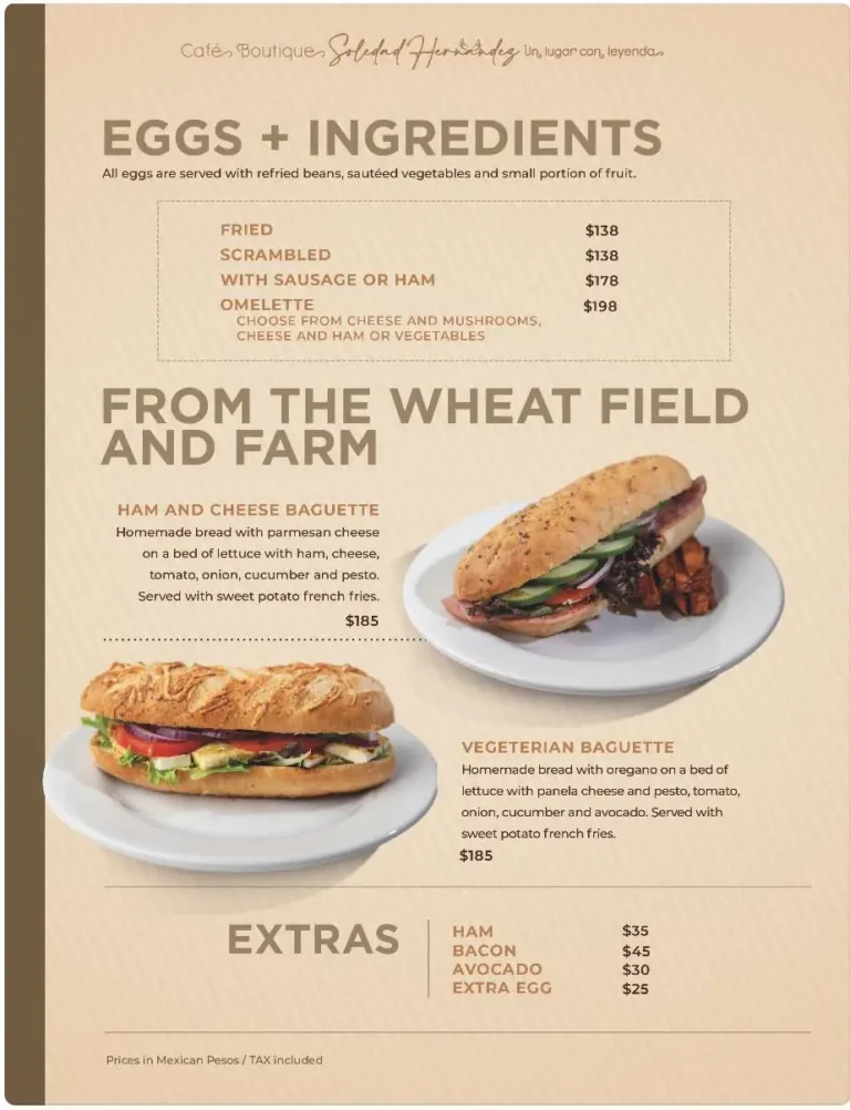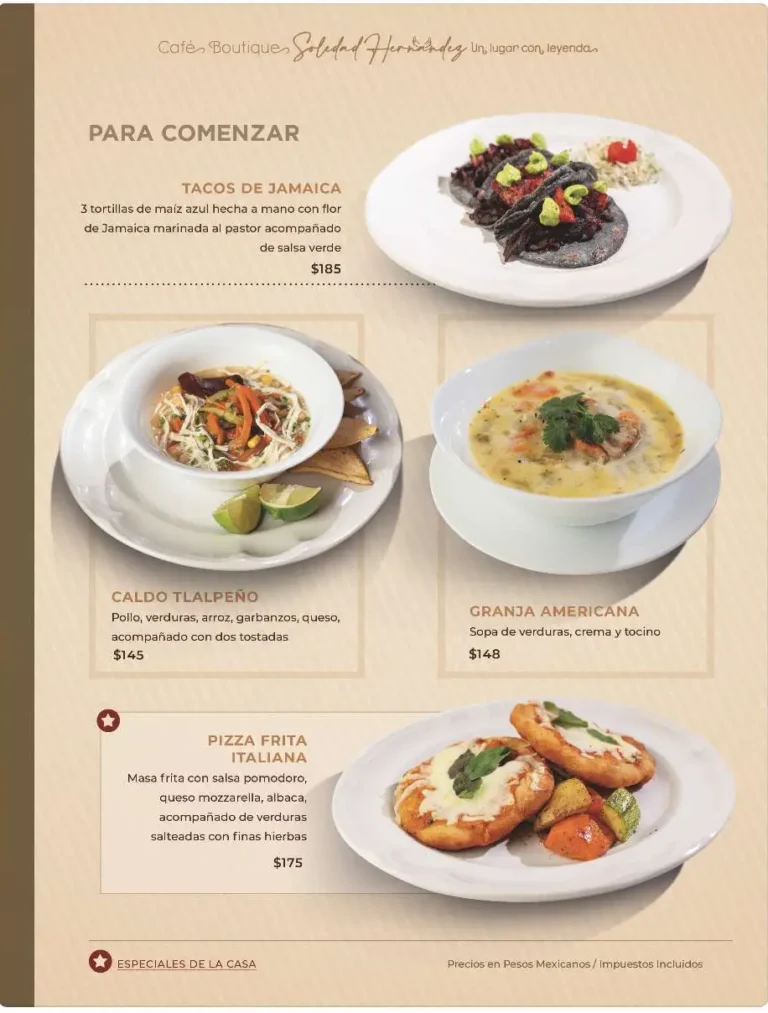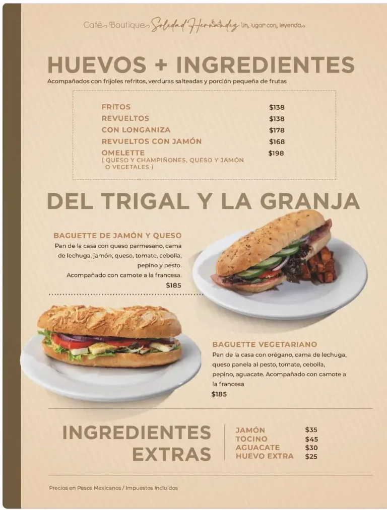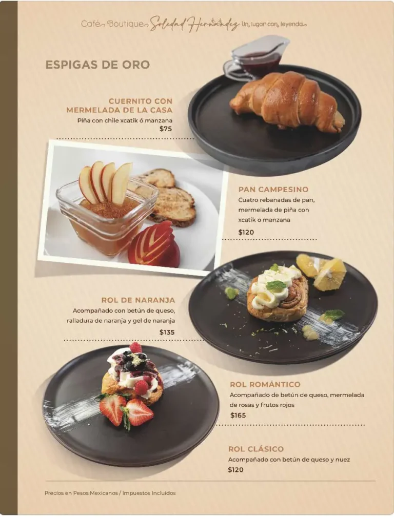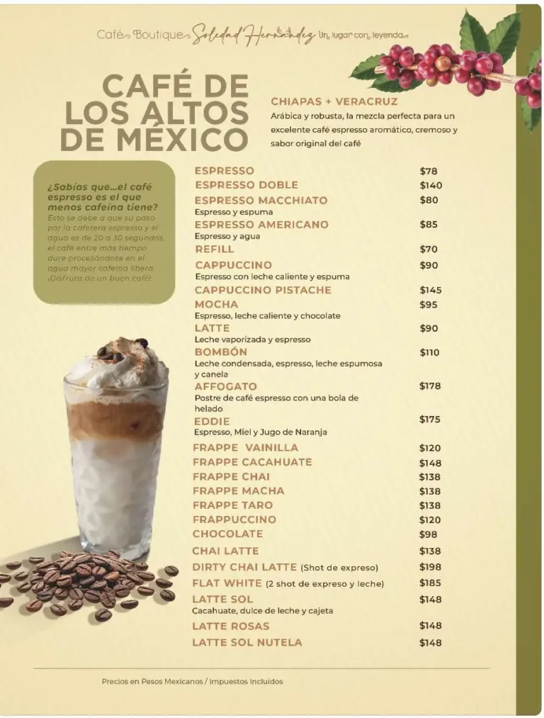 Soledad Hernández le invita a su hermoso establecimiento con una cálida bienvenida y comida casera. Comience con una bebida artesanal a base de espresso y una ofrenda de sus productos recién horneados.