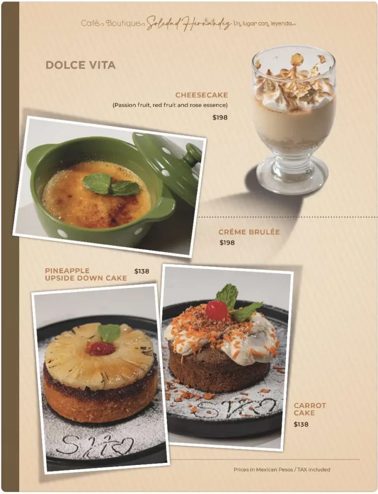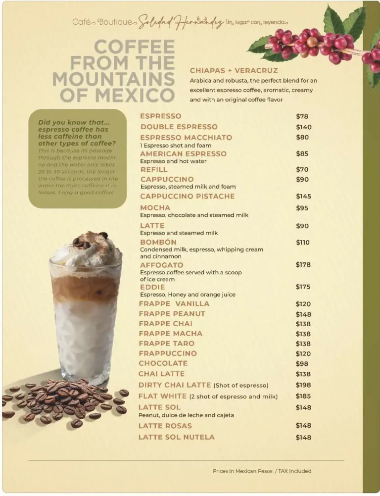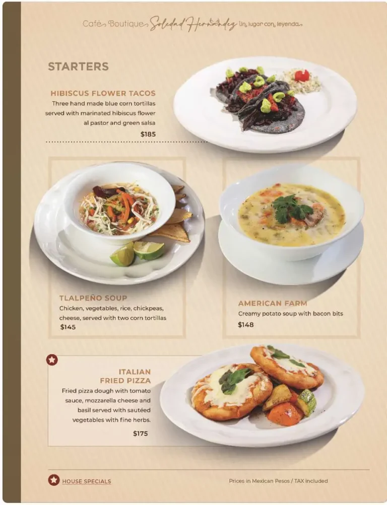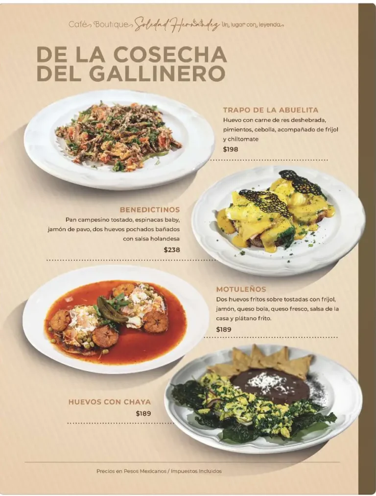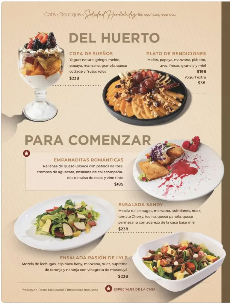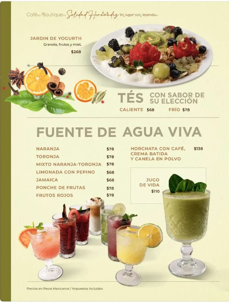 Soledad Hernández le invita a su hermoso establecimiento con una cálida bienvenida y comida casera. Comience con una bebida artesanal a base de espresso y una ofrenda de sus productos recién horneados.