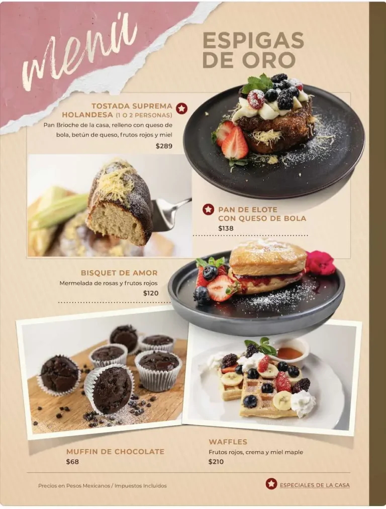 Vea nuestras deliciosas ofertas en nuestro menú. Asegúrese de preguntarle a su mesero por los platos especiales del día, así como por los artículos especiales de nuestro barista y bar.